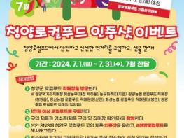 청양군은 7월 여름 휴가철을 맞아 여행객을 사로잡을 이벤트를 다음 달 1일부터 말일까지(7.1.~7.31.) 청양 지역 먹거리 인증사진 이벤트를 진행한다.이번 행사는 청양군 지역 먹거리(로컬푸드) 직매장 활성