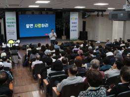 서울 서초구가 7일 ‘큰별쌤’으로 알려진 역사 커뮤니케이터 최태성 강사를 초청해 지역 국가유산과 역사이야기를 중심으로 ‘새로이학교 역사 토크콘서트’를 열었다. 서초구립 내곡느티나무쉼터에서 열린