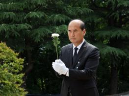 상주시는 6일 충혼탑에서 순국선열과 호국영령의 희생정신을 기리기 위해 제69회 현충일 추념식을 개최했다.이날 추념식에서는 보훈단체장, 기관단체장 등 800여 명이 참석한 가운데 오전 10시 정각 울리는