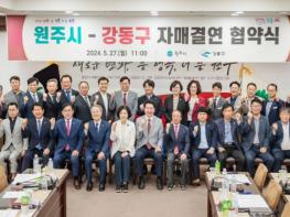 강동구는 지난 27일 강원특별자치도 원주시와 ‘친선결연’ 협약을 체결했다.이날 협약식이 진행된 원주시청에 이수희 강동구청장과 원강수 원주시장을 비롯해 양 도시 의회 의원들과 관계 공무원 30여 명이