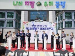 중랑구가 22일 제44회 장애인의 날을 기념해 ‘제2회 중랑구 장애공감주간’의 시작을 알리는 개회식을 개최했다.류경기 구청장을 비롯해 구의원, 장애인단체장, 장애인복지시설장 등 100여 명이 참석해 축