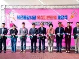 제천문화재단 상권르네상스사업단은 중앙시장 옥상의 유휴공간을 활용하여 옥상무대 및 고객 쉼터 공간을 조성하고 지난 18일 개장식을 진행했다. 이날 김창규 제천시장, 이정임 제천시의회 의장 등이 참석