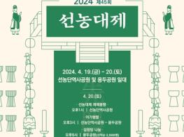 서울 동대문구는 오는 4월 19일,20일 이틀 간 선농단역사공원 및 용두공원 일대에서 동대문문화재단 주최 ‘2024 선농대제’를 개최한다고 밝혔다.‘선농대제’는 한 해 풍년을 기원하는 제향(祭享)에 왕이