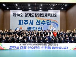 파주시장애인체육회는 지난 26일 금촌다목적실내체육관에서 ‘제14회 경기도장애인체육대회’에 참가하는 선수단 출전 결단식을 개최했다.이날 행사에서는 회장인 김경일 파주시장을 비롯해 파주시 장애인체