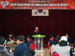 당진시민축구단이 4일 당진종합운동장 트레이닝센터에서 2024시즌 출정식을 개최하며 새 시즌의 힘찬 발걸음을 내디뎠다.출정식에는 구단주 오성환 당진시장과 창단부터 시민축구단의 메인스폰서를 맡고 있