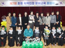 태안지역 60~80대 ‘늦깎이 초등생’들이 마침내 꿈에 그리던 졸업장을 받고 활짝 웃었다.태안군은 지난 16일 군 교육문화센터 다목적강당에서 가세로 군수와 졸업생, 문해교사 등 50여 명이 참석한 가운데