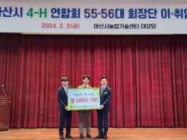 아산시는 지난 2일 아산시농업기술센터에서 약 80명의 회원과 내빈들이 참석한 가운데 아산시4-H연합회 제55대, 56대 회장 이·취임식을 개최했다.이번 행사에서는 지난 2년간 아산시4-H연합회를 이끌어온 제