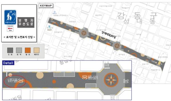 구는 차량과 보행자의 통행이 많아 안전사고 위험이 높았던 성일초등학교 통학로 (양재대로89길)를 보행자우선도로로 신규 지정하고, 보행자 우선도로이지만 노후된 명일초등학교 통학로(고덕로38길)도 재포장 대상으로 지정했다.