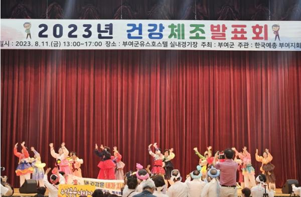 부여군은 지난 11일 유스호스텔 실내경기장에서 ‘어르신들의 건강한 삶! 행복한 인생!’이란 주제로 건강한 생활과 아름다운 노후를 위한 2023년 건강체조발표회를 개최했다.