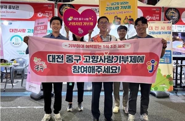 대전 중구는 0시 축제장에 고향사랑기부제 홍보 부스를 마련하고 축제장을 찾은 시민 및 관광객들을 대상으로 홍보물을 배부하며 중구의 기부 답례품과 기부 방법, 새액공제 혜택 등을 적극 홍보했다고 밝혔다.