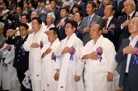 경축식은 이철우 경북도지사를 비롯해 도의회 의장, 도교육감 등 도내 기관단체장과 독립유공자 유가족, 보훈단체 등 500여 명이 참석한 가운데 거행됐다.