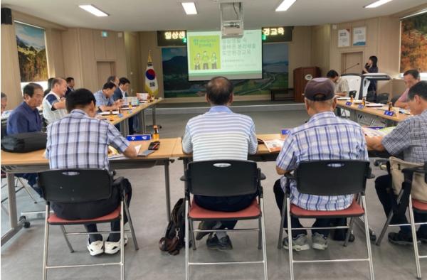이동면 행정복지센터는 14일 8월 이장단 정례회의에 앞서 ‘일상생활 속 올바른 분리배출’을 위한 도민 환경교육을 실시했다.