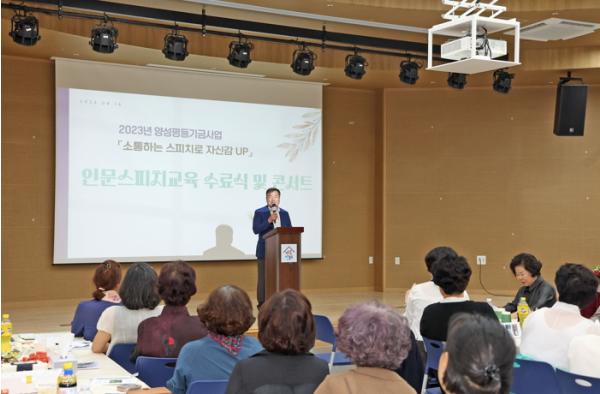 이승화 군수는 “지역 리더이자 자원봉사 중심에 있는 여성단체 회원들이 스피치 교육을 통해 보여준 열정에 자부심을 느낀다”며 “한 계단 더 성장한 모습에 박수를 보내고 앞으로 지역사회의 중추적 역할을 해주길 바란다”고 말했다.