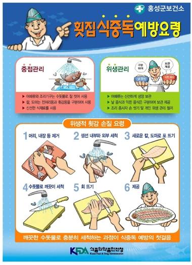 주요 내용은 ▲영업자 준수사항 지도 및 식중독 예방 교육 ▲수족관 등 영업시설 위생관리 개선 및 청결 유지 계도 ▲위생적 횟감 손질 요령 ▲칼·도마 구분사용 및 교차오염 방지요령 ▲식품용 기구 살균 소독방법 등을 교육하고, 여름철 식중독 예방을 위한 식중독 예방 6대 수칙에 대한 교육·홍보도 병행해 실시할 예정이다.