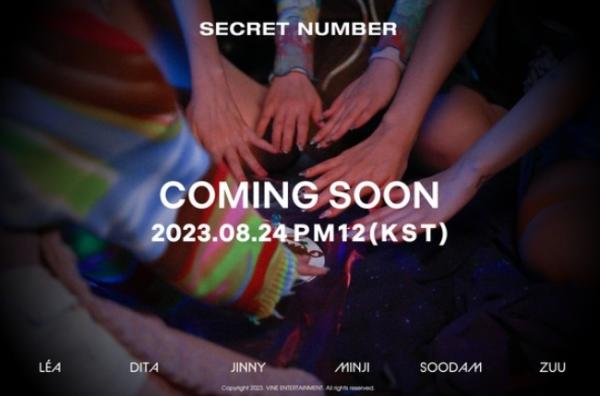 지난 14일 시크릿넘버의 공식 SNS를 통해 이번 컴백 소식을 알리는 커밍순 티저가 공개됐다. 이미지 속 손을 한데 모은 멤버들의 모습이 눈길을 사로잡는다. 이와 함께 ‘COMING SOON 2023.08.24 PM12(KST)’라는 문구로 발매일시를 공식화했다.