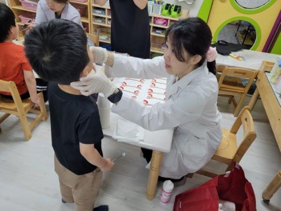 이에 구는 치아우식증에 취약한 어린이를 대상으로 ‘찾아가는 어린이 불소도포’ 사업을 실시하고 있다. 상반기에는 관내 유치원 어린이집 46개소를 찾아 어린이 1,114명을 대상으로 ▲구강검진 ▲불소도포 ▲구강보건교육을 진행했다.