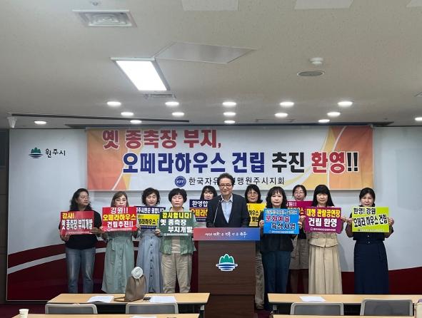 한국자유총연맹 원주시지회는 16일 시청 브리핑룸에서 원주시의 '강원오페라 하우스'건립 제안을 적극 지지하고 강원특별자치도의 확실한 결정과 이행을 촉구했다.