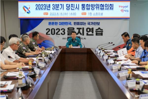 당진시가 16일 국지도발 대비 태세 확립을 위해 2023년 3분기 통합방위협의회를 개최했다.