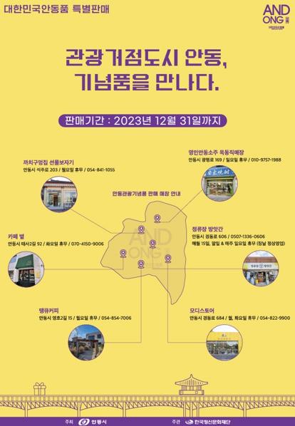 안동시는 안동 관광상품 공동 브랜드인‘대한민국 안동품’의 후속 사업으로 기존 카페·식당 등 상가 내에 관광기념품 판매장을 설치하는 ‘관광기념품 샵인샵 육성사업’을 본격 추진한다.