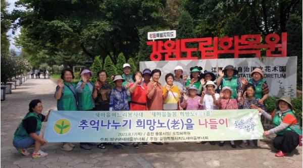 양구군 새마을며느리봉사대는 17일 관내 어르신 15명을 모시고 춘천 풍물시장, 도립 화목원 등을 방문하며 ‘추억나누기 희망노(老)을 나들이’를 진행하였다.