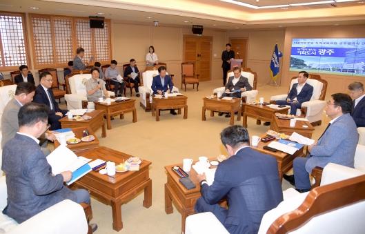 광주광역시와 더불어민주당 광주지역 국회의원은 19일 오후 3시 시청 비즈니스룸에서 간담회를 열어 내년도 국비 확보와 시정 주요 현안 해결을 위한 입법 추진에 힘을 모으기로 했다.