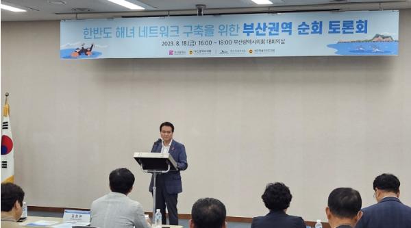 김희현 제주특별자치도 정무부지사는 18일 부산광역시의회에서 열린 ‘한반도 해녀 네트워크 구축을 위한 부산권역 순회 토론회’에 참석해 관계자를 격려했다.