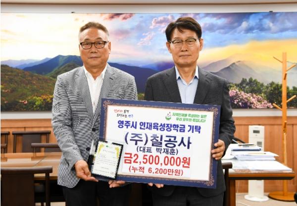 (재)영주시인재육성장학회는 22일 ㈜칠공사에서 지역인재 육성을 위한 소중한 마음을 담아 인재육성장학금 250만 원을 기탁했다고 밝혔다.