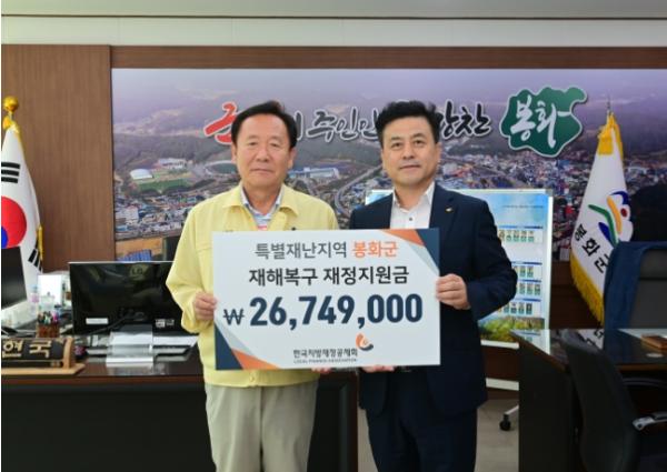 특별재난지역으로 선포된 봉화군이 한국지방재정공제회로부터 재정지원금 2,670만 원을 받았다고 밝혔다.
