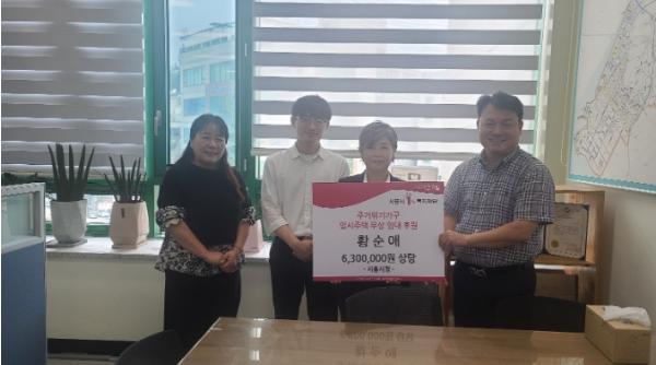 민간 후원자인 황순애 씨는 대야동에 소재한 본인 소유의 다세대주택 1호를 에어컨 설치, 장판 교체 등 주택 정비까지 완료한 후 시에 18개월간 무상으로 임대 후원했다. 황순애 씨의 주택은 ‘주거 취약계층 주거상향 지원사업’ 대상자를 위해 공공임대주택 이주 전 임시거처로 사용할 예정이다.
