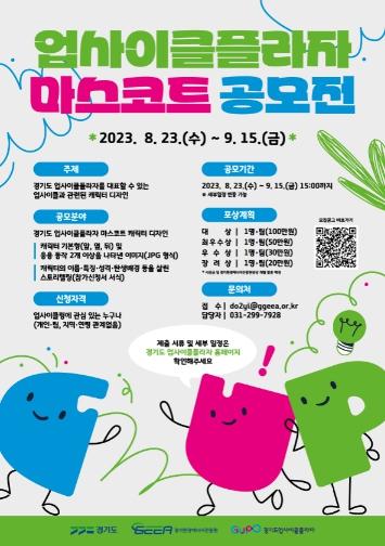 경기환경에너지진흥원에서 운영하는 경기도업사이클플라자에서는 시민 참여형 업사이클 문화확산과 업사이클플라자 홍보 활성화를 위한 마스코트 캐릭터 공모전을 개최한다.
