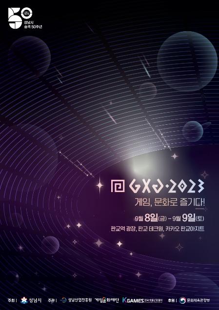 성남시는 시승격 50주년을 맞이하여 오는 9월 8일(금)부터 9일(토)까지 이틀동안 판교역 광장과 판교테크원, 카카오 판교아지트에서 ‘GXG 2023(Game Culture X Generation 2023)을 개최한다.