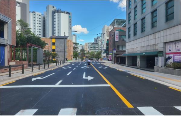 공사는 금년 3월 착공하여 이번 달 완료했으며 도로확장 구간에 편입되는 건물 2동을 철거한 후 기존 폭 8m 도로를 7m 확장하여 15m로 넓혔다.