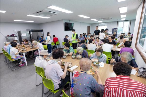 부산 북구는 지난 8월 23일 덕천마을공동체가 덕천종합사회복지관 1층 경로식당에서 열무김치 국수 나눔 행사를 진행했다고 밝혔다.