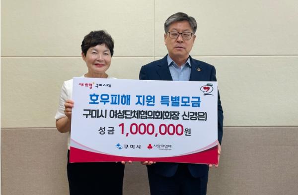 구미시 여성단체협의회는 25일 시청에서 집중호우로 피해를 본 지역 주민을 위한 성금 100만 원을 기탁했다.