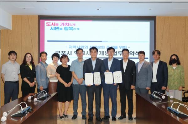 군포시청 중회의실에서 진행된 협약식은 학교시설의 지역주민 이용 증대를 통한 지역사회와 학교 간 교류 활성화를 도모하고, 교육지원청과 학교, 지역자치단체 간 협력체계를 구축하기 위해 마련됐다.