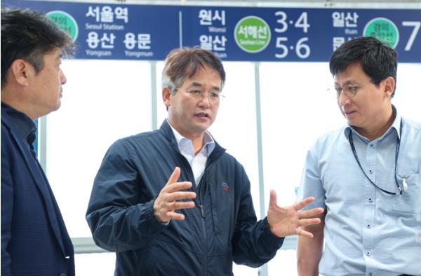 이 날 이 시장은 열차 탑승 전 서해선 일산역 연장 사업으로 설치된 일산역의 운영 시설과 이용 안내 시설, 승강장 등을 살피고 시민들의 이용 불편이 없는지 꼼꼼히 점검했다. 이 시장은 운영 기관인 한국철도공사에 열차 배차 간격의 개선 요청과 열차의 안전 운행을 당부했다.