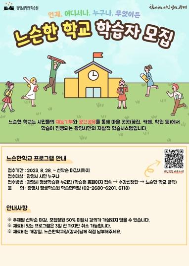 광명시는 오는 28일부터 ‘2023년 느슨한학교’ 프로그램 학습자를 모집한다.