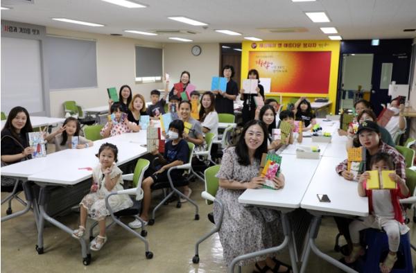 엄마 손을 잡고 온 유아에서 초등학생 어린이 등 다문화 가족들은 가위와 풀을 이용해 한지를 일일이 자르고 붙여 전통문화가 담긴 ‘한지 북아트’를 만들었다.