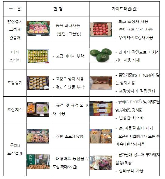 또한 농산물 품질 규격에서 정하고 있는 과일용 골판지 상자의 표준규격과 품질기준을 과도하게 초과하지 않도록 권고해 자원 낭비를 줄이도록 했다.