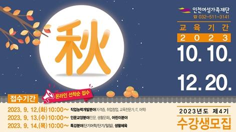 인천여성가족재단은 9월 12일부터 2023년도 4기 평생교육프로그램 수강생을 모집한다.