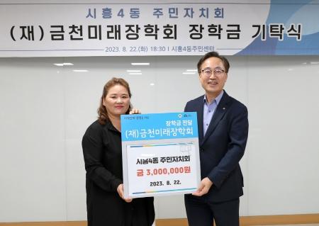 금천구는 8월 22일 시흥4동 주민자치회에서 장학금 300만 원을 재단법인 금천미래장학회에 기탁했다고 밝혔다.