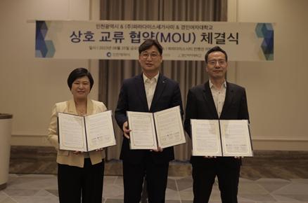 인천광역시는 25일 영종 파라다이스시티에서, 파라다이스시티, 경인여자대학교와 함께 지역인재 육성 및 채용 확대를 위한 업무협약을 체결했다고 밝혔다.