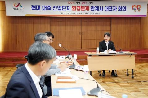 구상 서산시 부시장은 “기업이 환경적, 사회적 책임을 충실히 이행하는 모습을 보여달라”라고 25일 시청 중회의실에서 열린 ‘현대 대죽 산업단지 환경문제 관계사 대표자 회의’에서 강력히 요청했다.