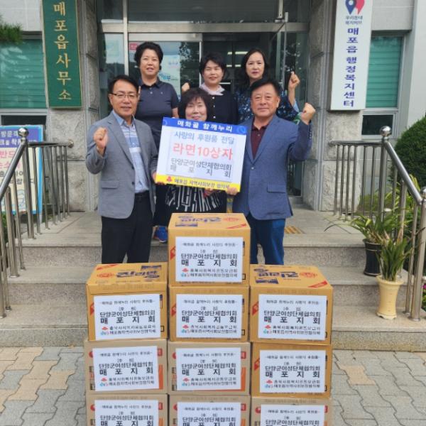 단양군여성단체협의회 매포지회는 매포읍지역사회보장협의체를 통해 사랑의 후원품 라면 10상자를 기탁했다고 지난 30일 밝혔다.