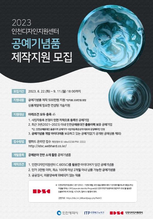인천 공예산업 육성을 위해 인천광역시가 주최하고 인천TP가 전담하는 사업으로, 인천디자인지원센터 CI(Corporate Identity)를 활용한 공예기념품 제작비용을 최대 500만 원까지 지원한다.