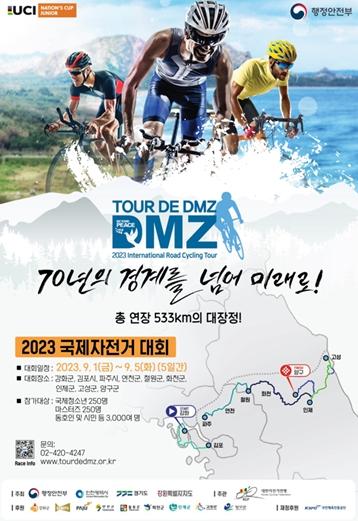 인천광역시는 행정안전부와 인천시, 경기도, 강원도가 공동주최하고, 대한자전거연맹이 주관하는 ‘뚜르 드 디엠지(Tour de DMZ) 2023 국제자전거대회’가 오는 9월 1일부터 9월 5일까지 비무장지대(DMZ)와 접경지역을 배경으로 5일간의 대장정을 펼친다고 밝혔다.