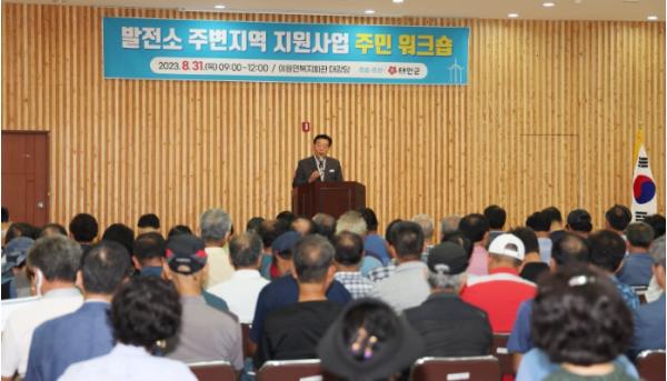 군은 지난 8월 31일 이원면 이원복지회관과 원북면 이화마을 청심관에서 가세로 군수를 비롯한 군 관계자와 원북·이원 이장단, 지역 주민 등 총 250여 명이 참석한 가운데 ‘발전소 주변지역 지원사업 지역주민 워크숍’을 열었다고 밝혔다.