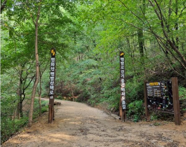 시는 시민 건강 증진을 위해 4억원을 투입해 지역주민과 등산객이 산책로로 이용하는 법화산 길에 맨발로도 편히 밟고 걸을 수 있는 치유형 산책로를 조성했다.