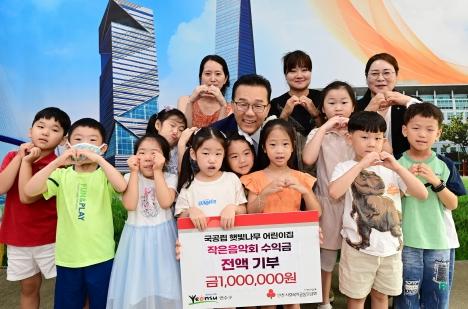 연수구는 지난 5일 국공립 햇빛나무어린이집으로부터 가정형편이 어려운 이웃을 위해 사용해 달라며, 어린이집 10주년 기념 ‘작은 음악회’ 수익금 전액(100만 원)을 사회복지공동모금회를 통해 기탁받았다.