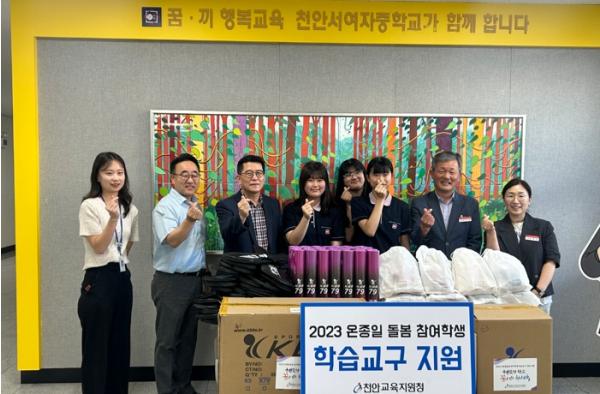 천안시태조산청소년수련관 청소년방과후아카데미(태조산, 광풍, 서여중)는 5일 충청남도천안교육지원청의 학습교구 지원물품 전달식을 천안서여자중학교에서 진행했다고 밝혔다.